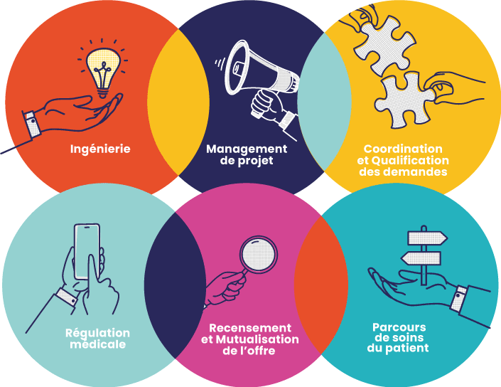 Sa mission centrale est d’assurer une réponse médicale adéquate, et sécurisée en recensant et en coordonnant les différents acteurs, et patients.